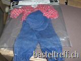 Anzug komplett mit blaue Hose blaue Kappe rotes Hemd für die Puppe.